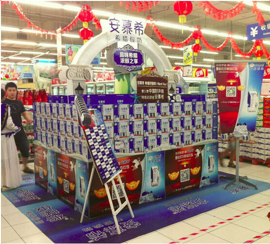 安慕希在线下超市商场进行堆头陈列,独特全新的包装外箱异常醒目,完美的展示了安慕希作为《中国好声音》网络总冠名的全新形象,用来抢安慕希红包的二维码也被放在醒目位置,此外全国各地30场的证言互动试饮活动,让无数消费者亲口品尝安慕希希腊酸奶的浓醇美味!