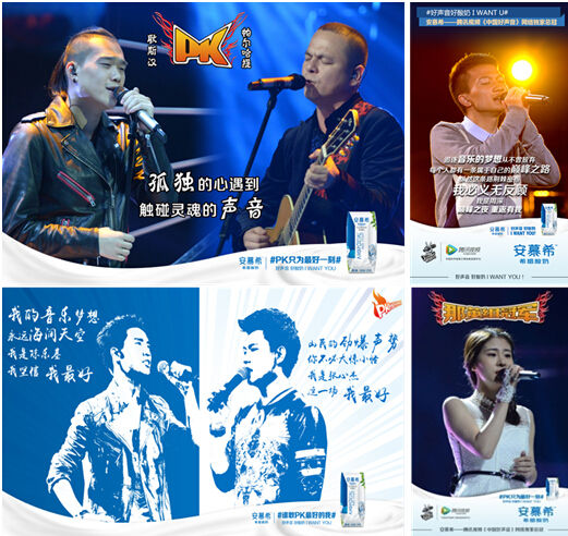 对于网民而言,当他们在透过腾讯视频观看《中国好声音》相关视频时,安慕希透过播放页前插入15秒视频广告,实现品牌广告全流量营销曝光,而且安慕希的广告由好声音学员吉克隽逸拍摄,这更好地强化了消费者认知,全面固化了安慕希与“好声音”的品牌联想。