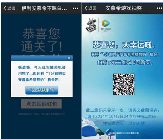 除了在腾讯各平台与好声音结合实现最大化曝光,安慕希还独辟蹊径,耗资数百万联合微信红包平台,让消费者在看好声音同时,通过趣味游戏了解安慕希产品特点,之后还能抢到真金白银的安慕希微信红包,实现了创新营销。