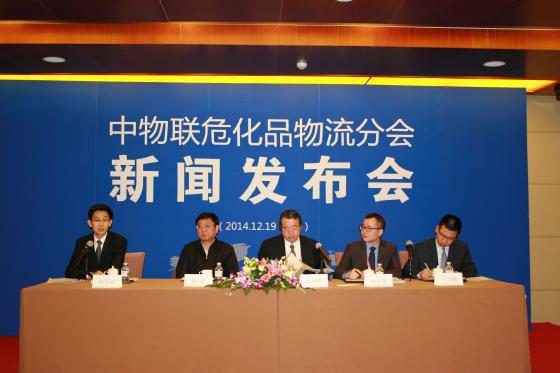 12月19日,危化品物流分会成立大会暨首届全国危化品物流行业年会在北京朗豪酒店召开。分会以“重造危化品物流发展环境”为目标,会议紧紧围绕“规模化、协同化、标准化”为主题开展,并同期举行了“百家媒体聚焦危化”的新闻发布会活动。发布会由危化品物流分会秘书长刘宇航主持,中国物流与采购联合会副会长蔡进、中国石化化工销售有限公司副总经理张国明、中外运化工国际物流有限公司总经理王笃鹏、扬子石化-巴斯夫有限公司物流总监赵宏斌分别发言,并与记者交流。