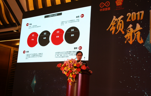 图:广州交易所集团林业生态交易中心总裁韩爱荣进行交易中心业务介绍