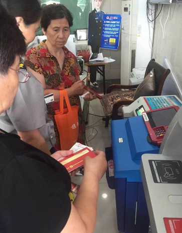 “以往每月15号不到7点半,我一大早儿就过来拿号排队取钱了,排一上午是常有的事儿。现在有了这台新机器,以后再也不用赶大早过来排队领钱,随时都能取款啦!”75岁的退休老人王大爷喜悦的告诉笔者,“对于我们这种老年人来说,还是现金更让人踏实。”