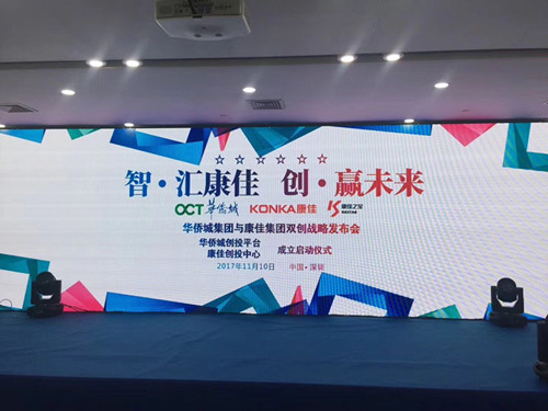 十一月十日,华侨城集团与康佳集团双创战略发布会暨华侨城创投平台、康佳创投中心启动仪式在深圳举行,宣告了一个集孵化器、加速器、创新基地及创投基金于一体的双创示范平台正式落成。