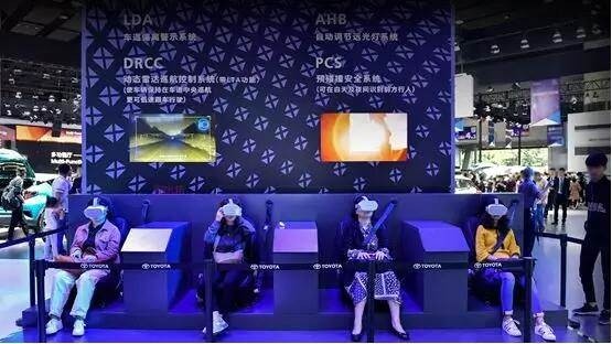 消费者在广州车展现场用VR设备体验丰田最新的智行安全