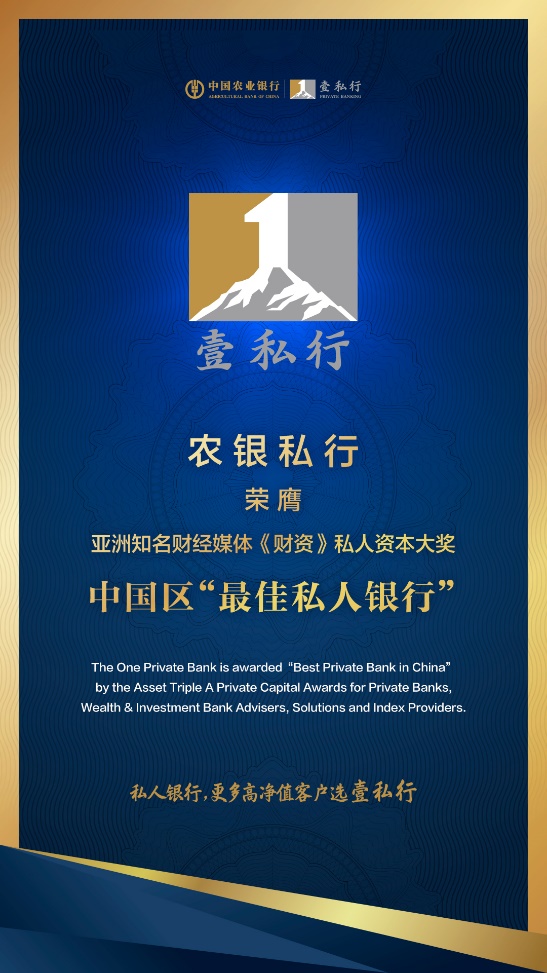 2020年恰逢中国农业银行私人银行开业十周年,农行推出首个业内私人银行专属品牌“壹私行”,以市场领导者的更高标准,不断突破、超越自我。获此殊荣,标志着中国农业银行私人银行业务的行业影响力和市场地位再次获得了知名媒体和国内业界的充分认可,同时也是对壹私行“行业领导者定位”的很好呼应。今后,我们将会以更优质的服务来回报广大客户的倾情托付和信任,打造服务高端客户的金字招牌。